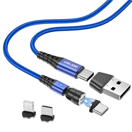 USLION 60W Magnetic Fast Charging Cable - USB A / Type C / Micro Power Delivery PD Data Cord