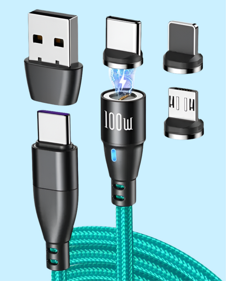 AUFU 100W Magnetic Fast Charging Cable - USB A / Type C / iOS Lightning Power Delivery PD Data Cord