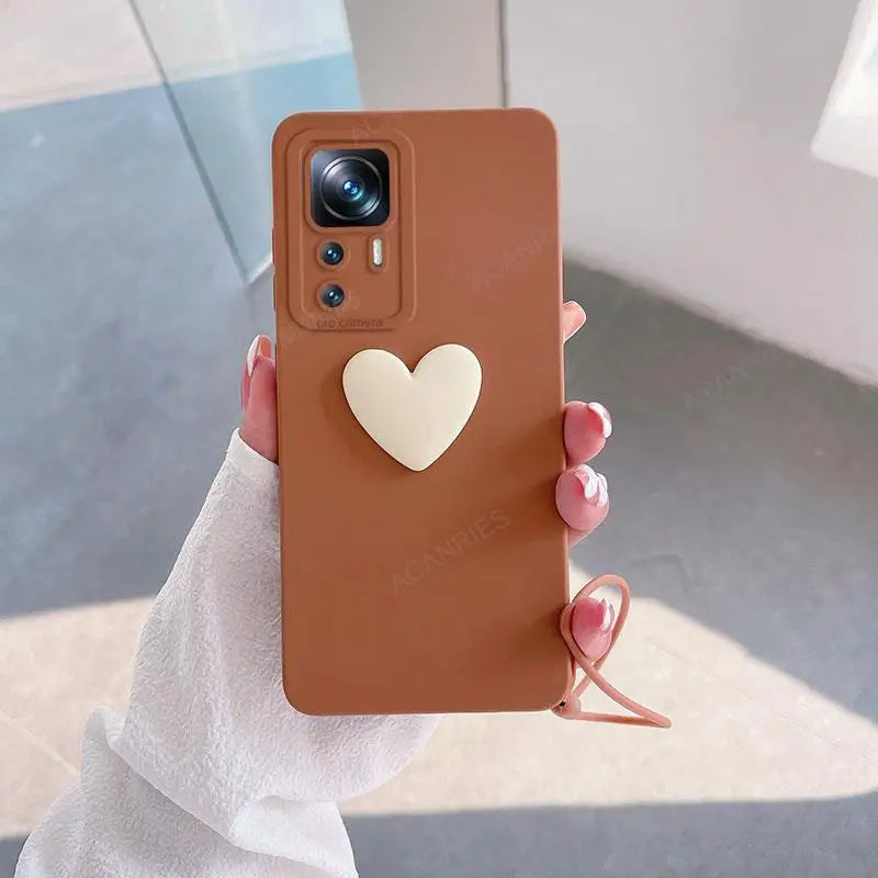 Phone Case with Love Heart Ring Holder For Xiaomi Mi 12 11 10 A C S T X Pro Lite Lanyard Wrist Strap