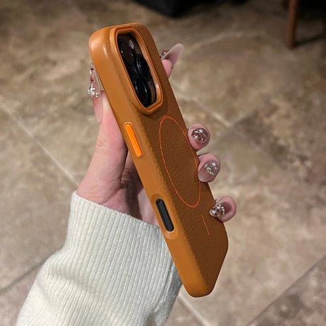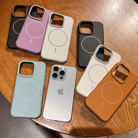 Luxury Leather Lychee Pattern Magsafe Case For iPhone 16 11 12 13 14 15 Pro Max Plus
