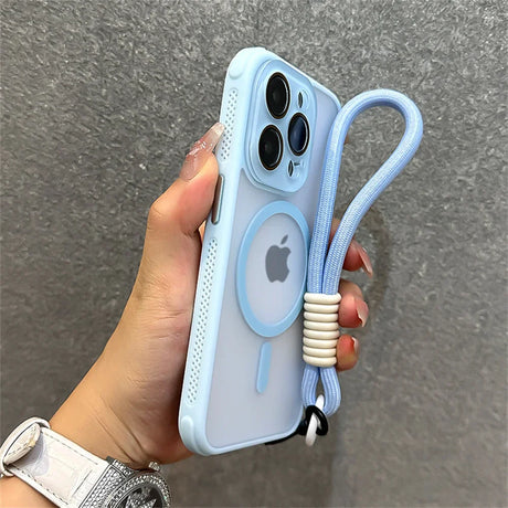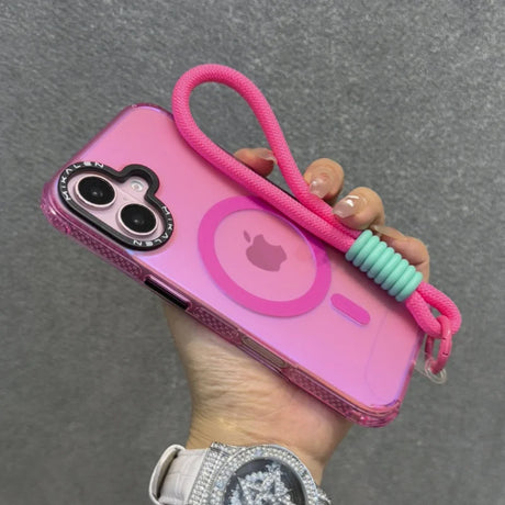 Luxury Gradient Color MagSafe Case with Wrist Strap For iPhone 16 14 15 13 Pro Max