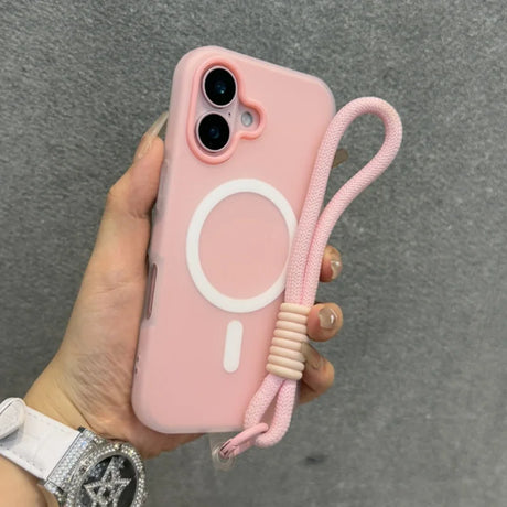 Luxury Candy Color Magsafe Jelly Soft Case with Wrist Strap for iPhone 16 15 14 13 11 12 Pro Max