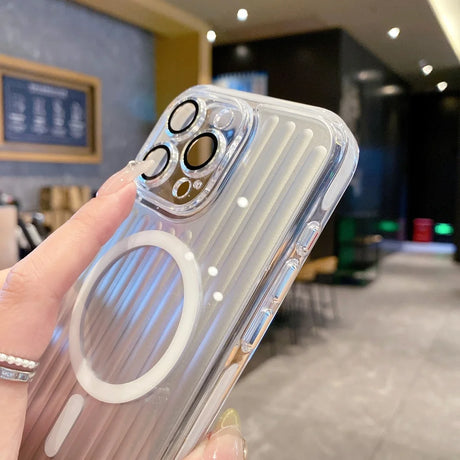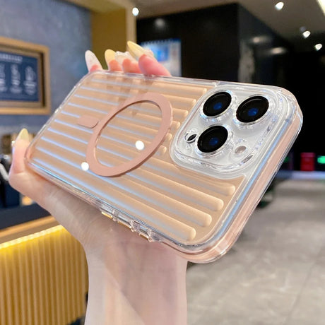 Luxury 3D Stripe Luggage Pattern Design MagSafe Lens Connect Case For iPhone 16 14 15 Pro Max Plus