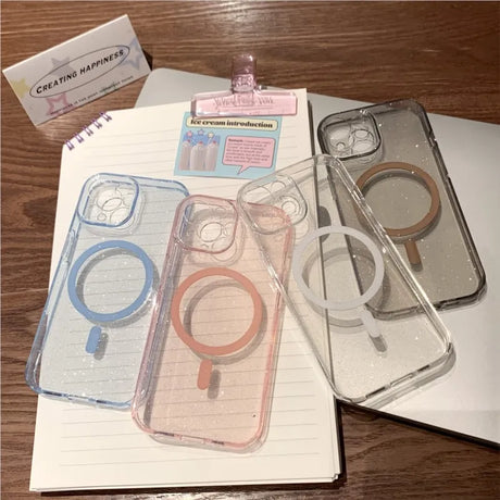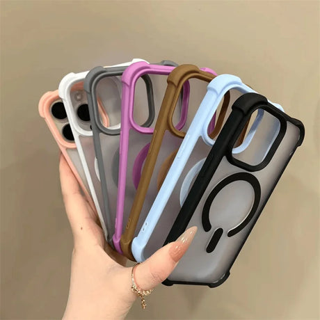 Shockproof Transparent Color MagSafe Magnetic Charge Case For iPhone 16 15 14 13 Pro Max