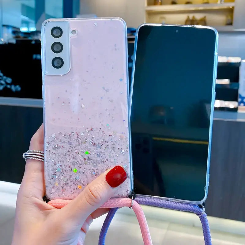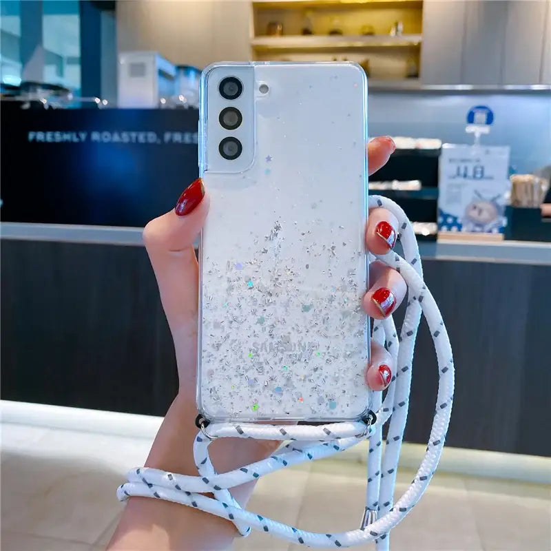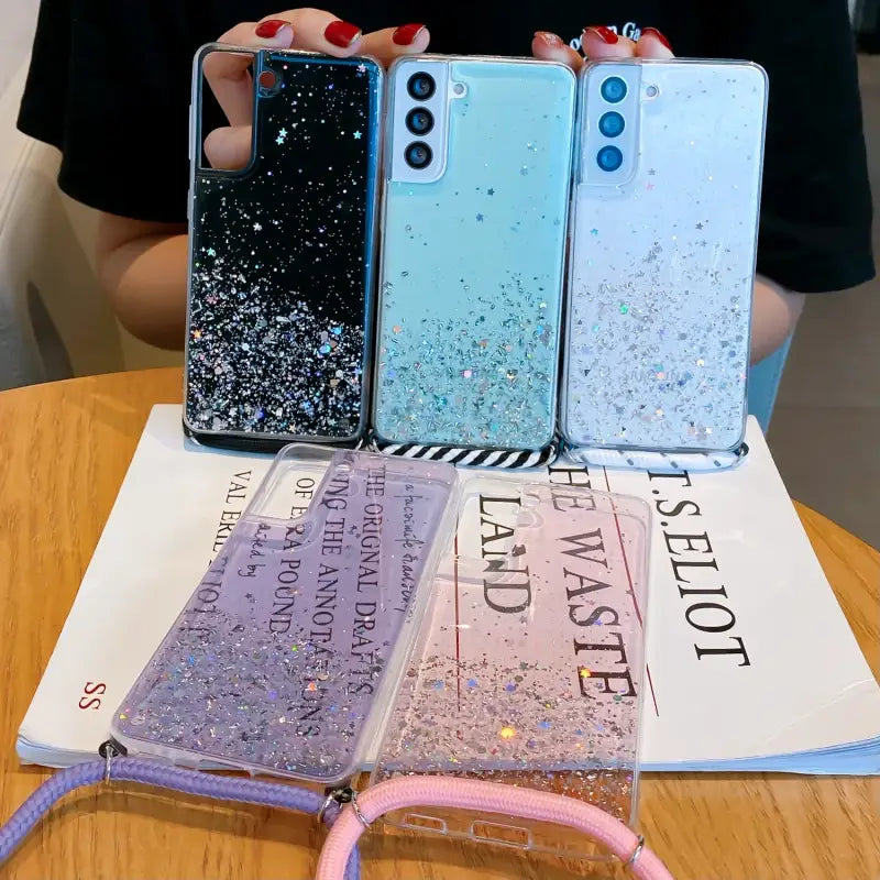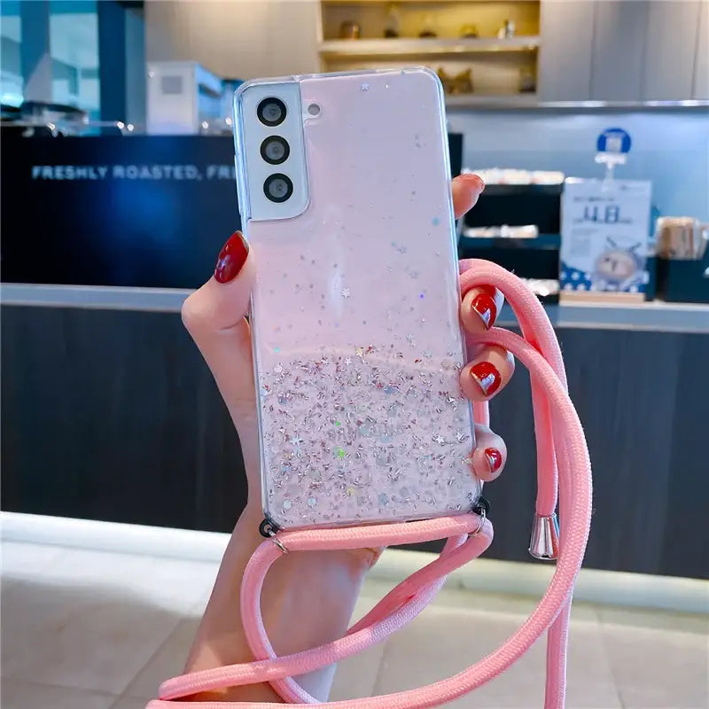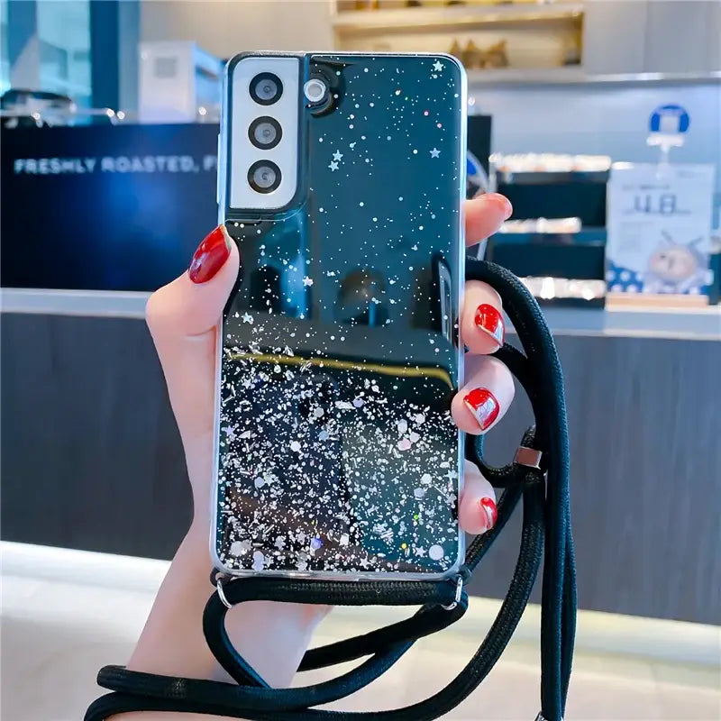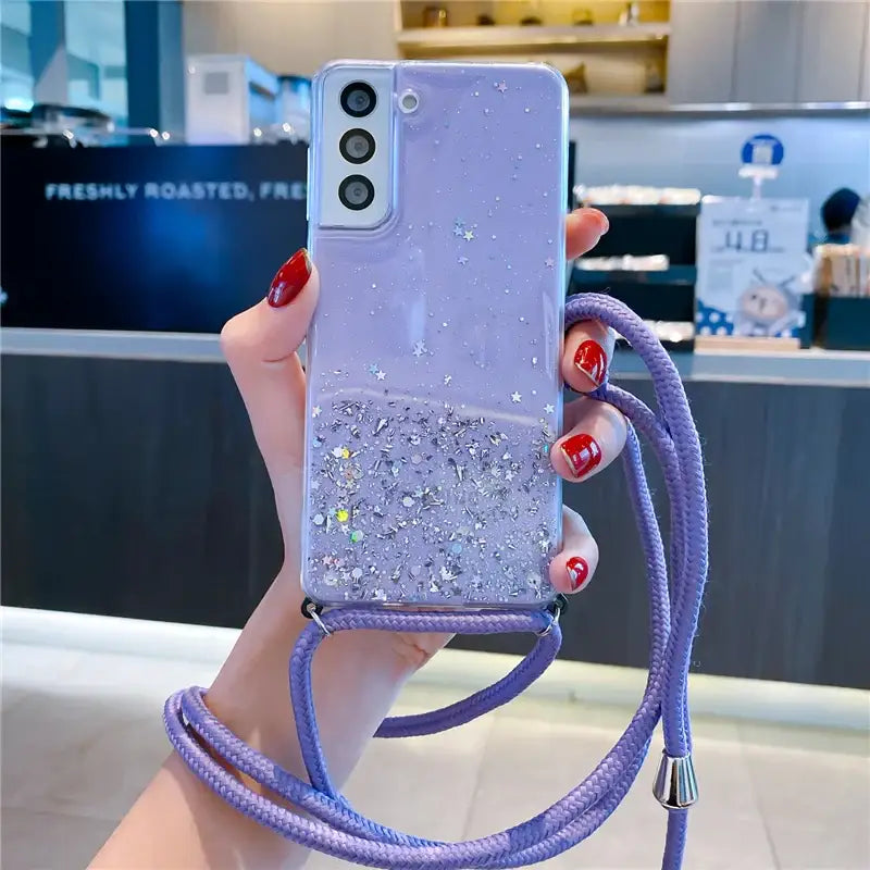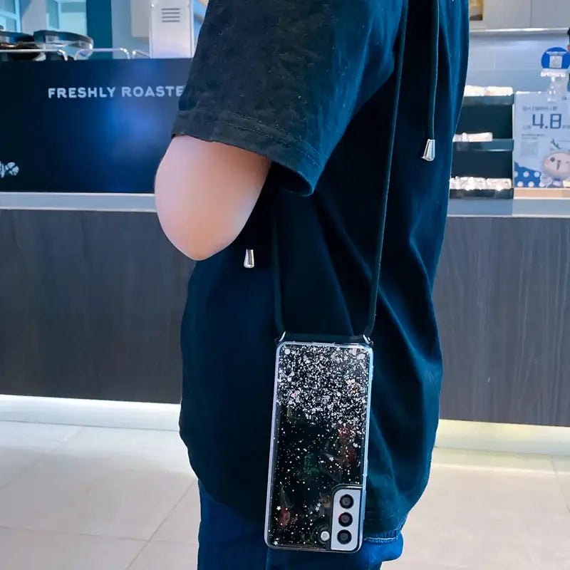 Luxuriöse Glitzer-Telefontasche mit Crossbody-Lanyard