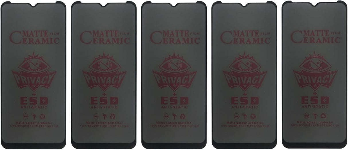 5 Pack of Ceramic Premium Matte Privacy Finish - Durable Flexible Screen Protectors for Motorola Moto E7 Power, Moto G9. Full screen protection from common key or knife scratching & higher level (but not absolute) impact protection. Suitable for high wear everyday use.