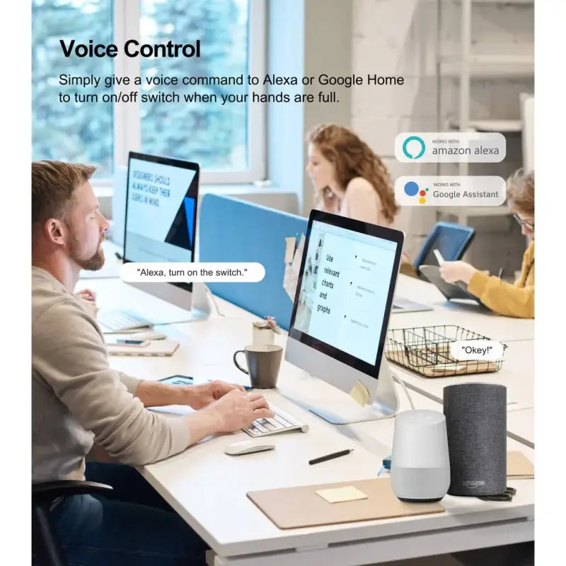 Experience the convenience of voice control with compatibility with Google Home and Alexa. Effortlessly manage your lights and create custom schedules through the Tuya app, offering smart home control at your fingertips.