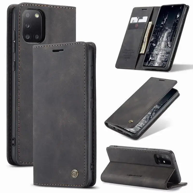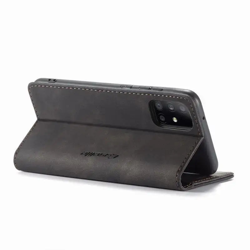 Upgrade to luxury with our Wallet Leather Style Phone Case featuring a convenient flip stand, designed exclusively for Samsung Galaxy A series, including A12, A21S, A31, A41, A51, A71, A81, and A91 models. Crafted with premium materials, this case offers both style and functionality. Keep your device protected and organized while enjoying the convenience of the magnetic closure. Elevate your Samsung Galaxy experience with our sophisticated cover.