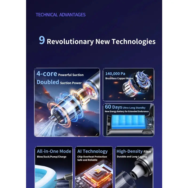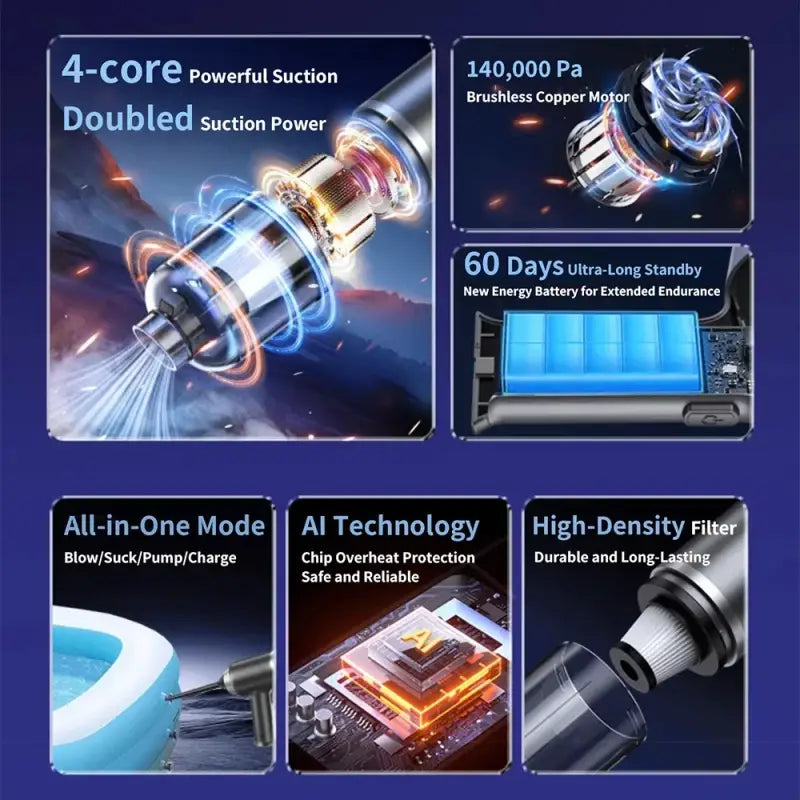 OEMG Portable Handheld Car Vacuum Cleaner 140000PA 4000mAh - Wireless Handheld Mini Vacuum Blower