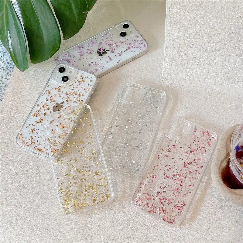 Funkelnde Bling-Folien-Handyhüllen für iPhone 14 13 12 Pro Max Plus, luxuriöser Gold-Glitzer, klares, weiches TPU