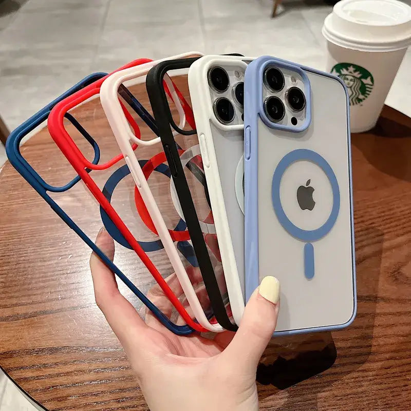 Luxury Pastel Boarder MagSafe Lens Protect Case For iPhone 15 14 13 Pro Max Plus