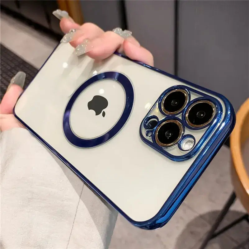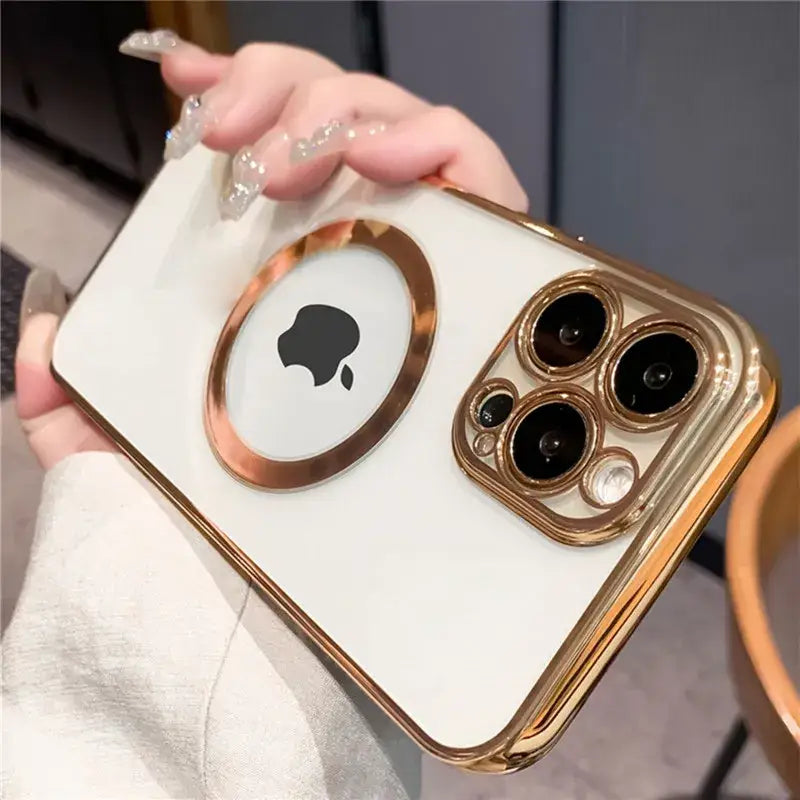 Upgrade your iPhone's look with our Luxury Plating Border case! Designed for iPhone 15, 14, 13 Pro Max and Plus models, this premium case features an eye-catching metallic plated border that adds a touch of sophistication. The specialized lens protection keeps your camera safe, while full MagSafe compatibility ensures convenient wireless charging and accessory use. Combines elegant style with practical protection for your valuable device!