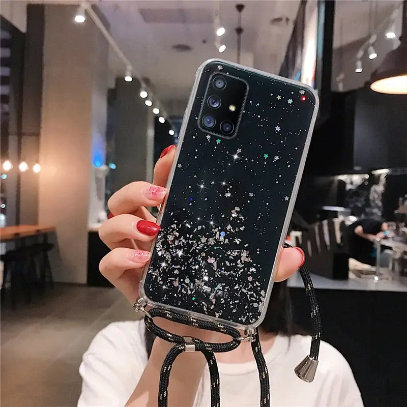 Halsband Seil Kordel Glitzer Hülle für Samsung Galaxy A51 A71 A13 S23 S20 FE S21 Ultra S10 Plus A72