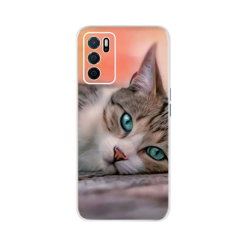 Niedliche Tier-Blumen-Landschaft-Retro-Kassetten-Handyhüllen für Oppo A54s Hülle Cph2273, süße Katze, Schmetterling