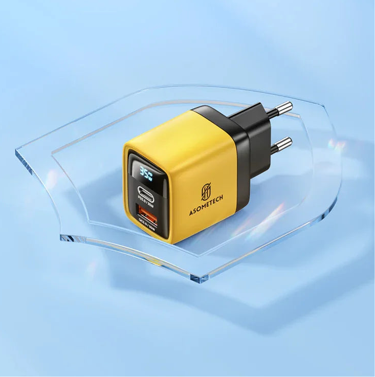 Stay charged and connected with the ASOMETECH 35W 2-Port Fast Charging Socket. Featuring USB-A and Type-C Power Delivery (PD) ports and an integrated LCD display, this charger plug ensures efficient and reliable charging for smartphones, tablets, and more.
