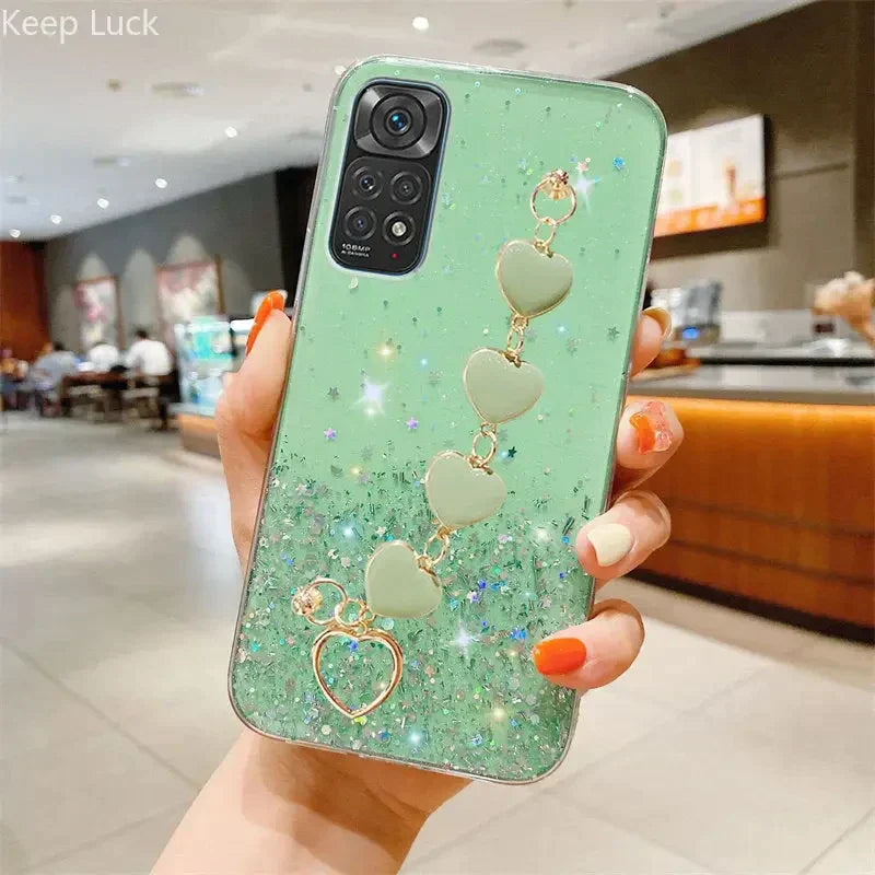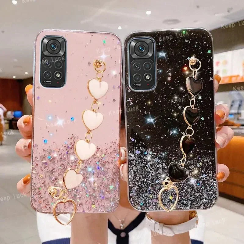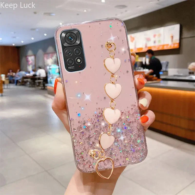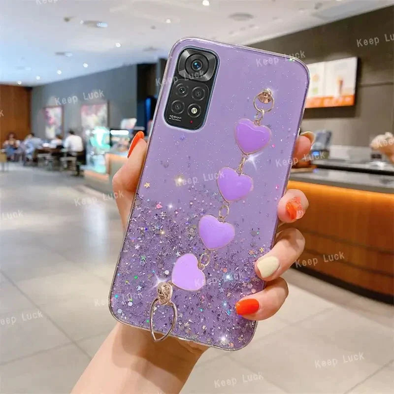 Luxuriöse Handyhülle mit Liebesherz-Handgelenkkette für Xiaomi Redmi Note 11 12 10 9 ACST POCO X4 M4
