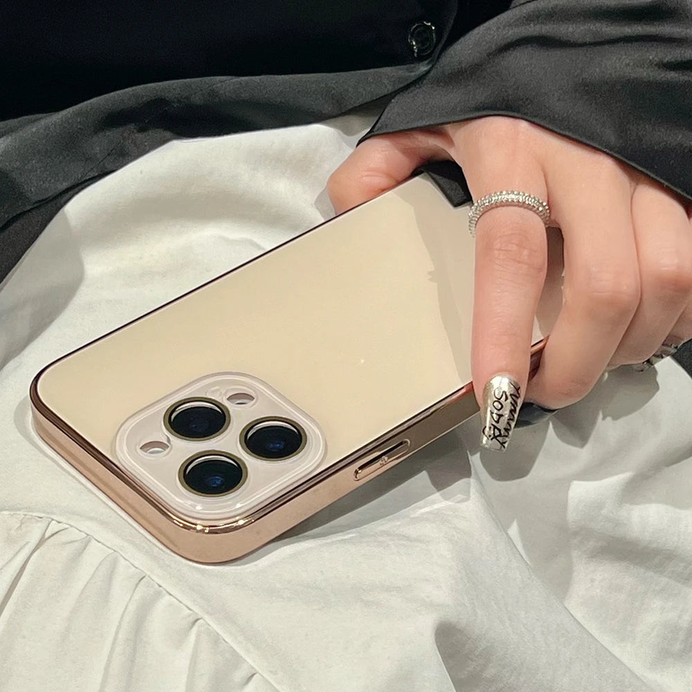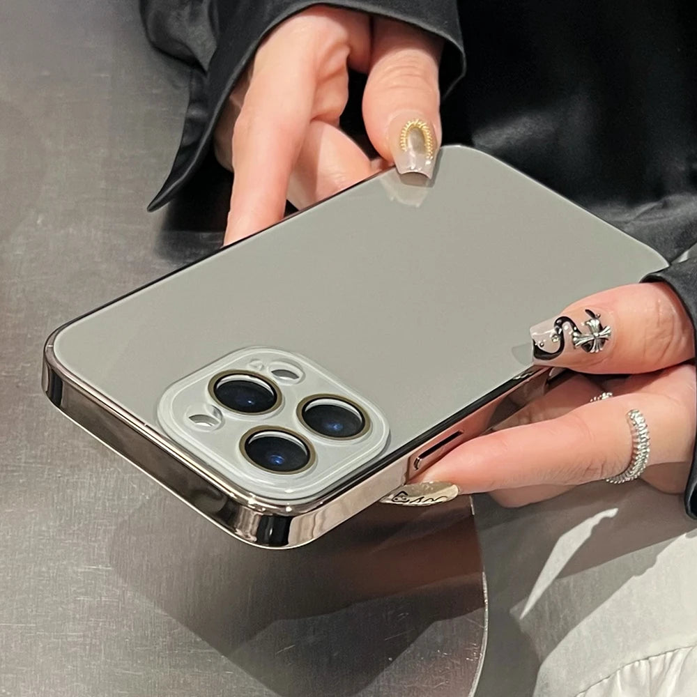 Elevate your iPhone with this Luxury Plating Gloss Glass Case, featuring a high-shine tempered glass back, elegant metallic plating, and built-in camera lens protection. Designed for both beauty and durability, this case offers premium style with everyday defense.