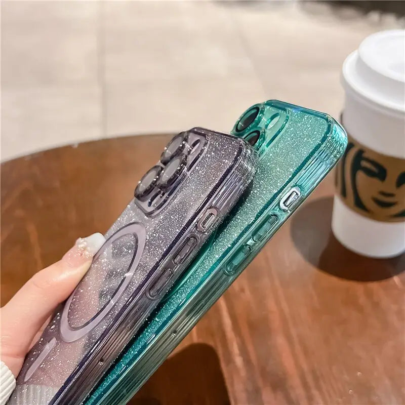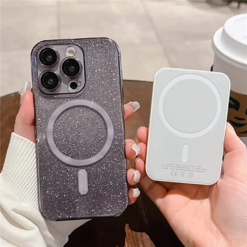 Luxuriöse glitzernde magnetische kabellose Lade-Handyhülle für iPhone 11 12 13 14 Pro Max Plus MagSafe