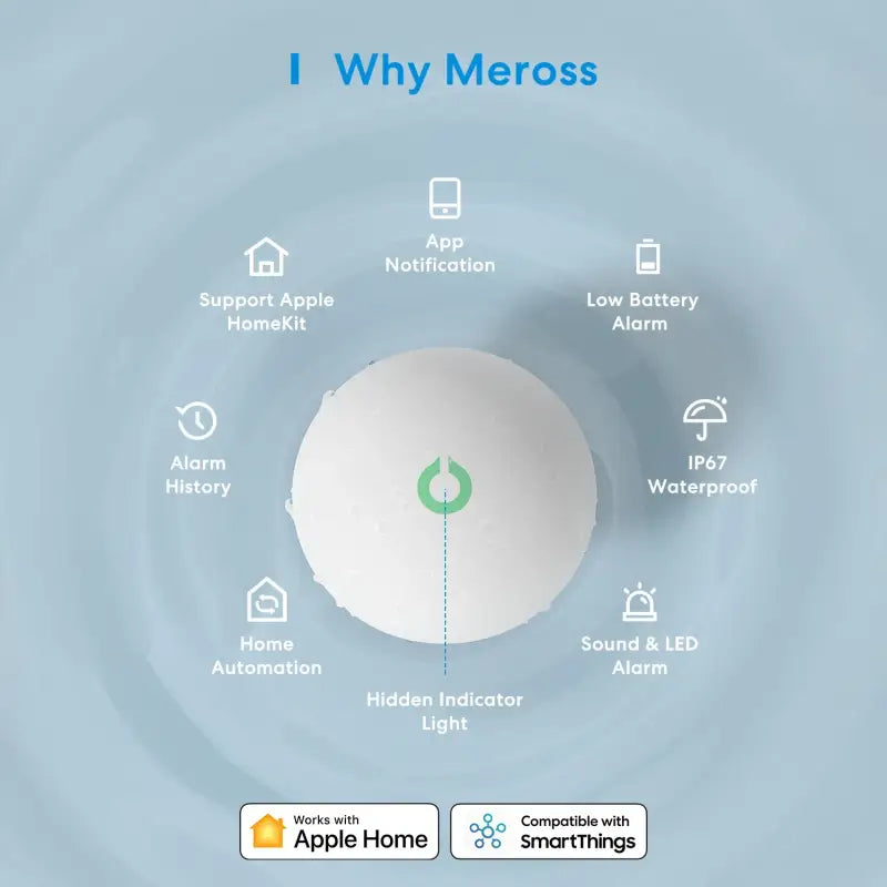 Elevate your home security with the Meross HomeKit Smart Water Leak Sensor, where cutting-edge technology meets proactive safety. Trust in its compatibility and innovation to keep your home secure and provide peace of mind against unforeseen water-related emergencies.