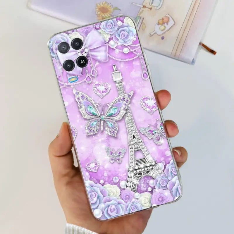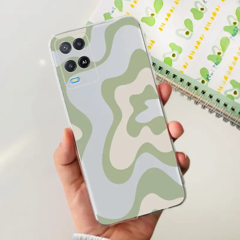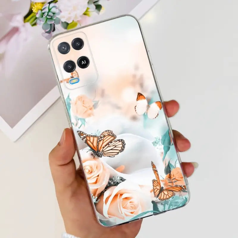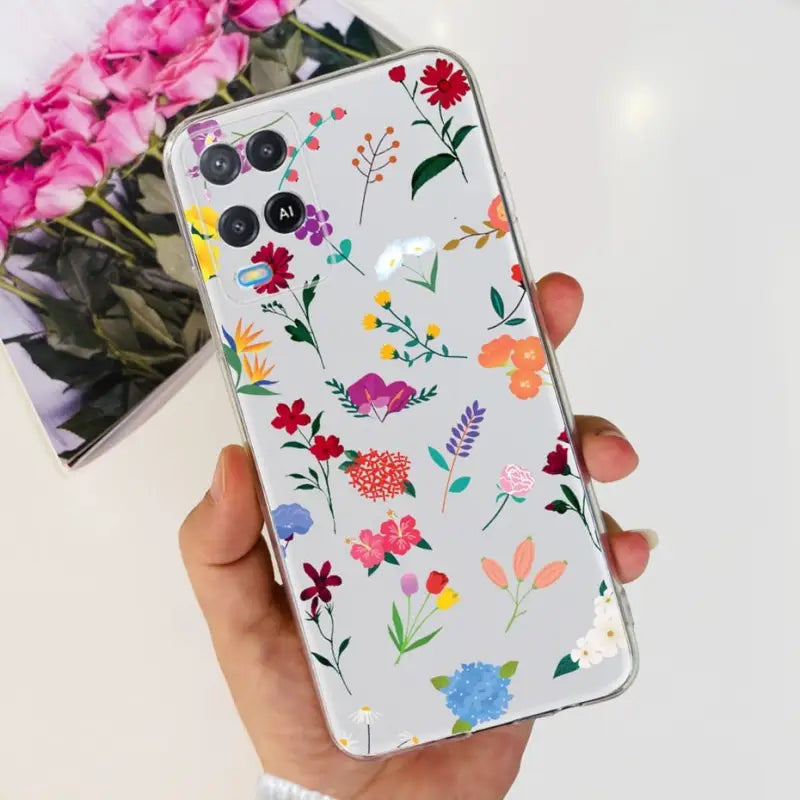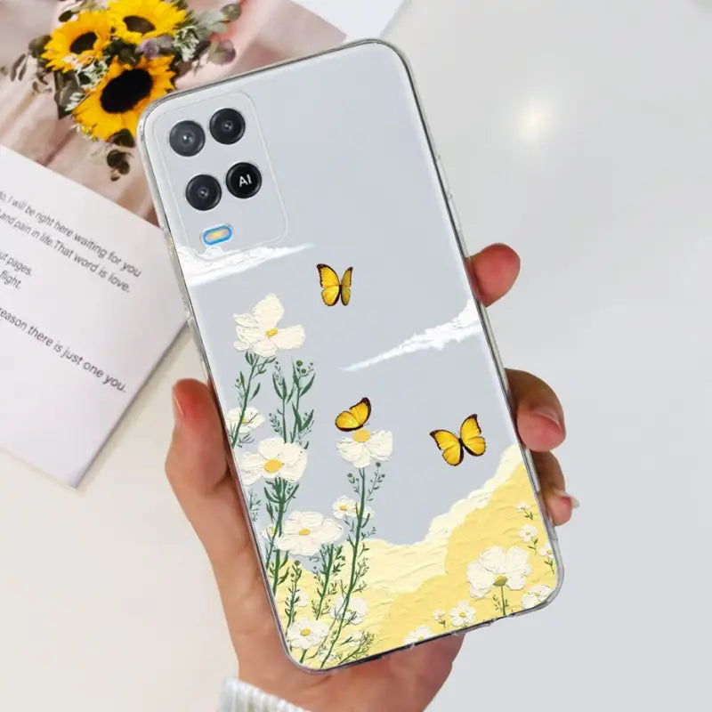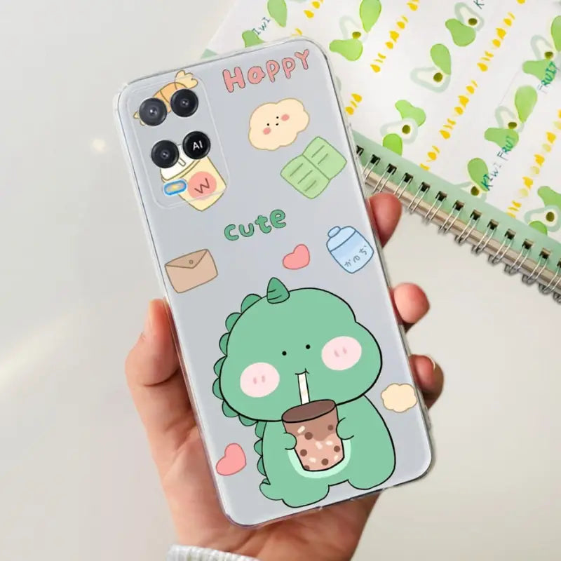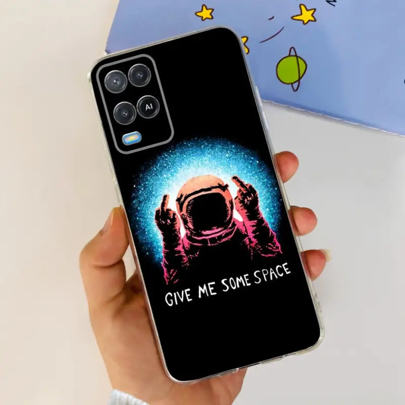 Niedliche glückliche Monster-Astronauten-Landschafts-Blumen-Handyhüllen für Oppo A54 4g, modisch, weich