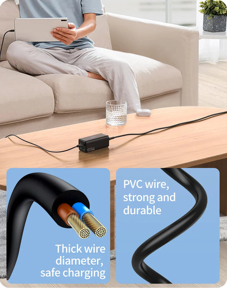 QOOVI 65W 3-Port GaN Fast Charging Socket - USB A / Type C Power Delivery PD Phone Charger Plug