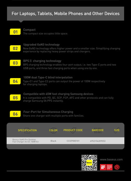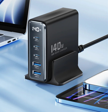 200W 6-Port GaN Fast Charging Stand - USB A / Type C Power Delivery PD Phone Charger
