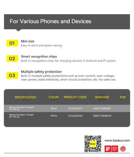 Baseus 17W 3-Port Fast Charging Socket - USB A Power Delivery PD Phone Charger Plug