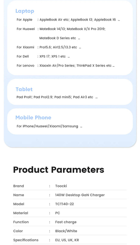 Toocki 67W 4-Port GaN Fast Charging Stand - USB A / Type C Power Delivery PD Phone Charger