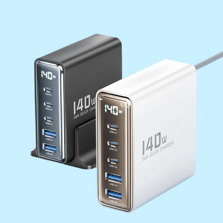 240W 8-Port GaN Fast Charging Stand - USB A / Type C Power Delivery PD Phone Desktop Charger