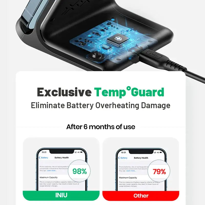 Crafted with sleek design and magnetic compatibility, these stands provide a secure and stable platform for your device. Experience the pinnacle of convenience with the INIU 15W Magnetic Wireless Charger Stands—a stylish and reliable addition to your charging setup.