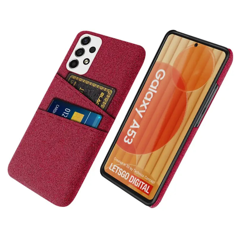 This textured fabric design case offers a sophisticated look and practical protection for Samsung A53, A52, A51, A73, A72, A71, and A70 models. Equipped with card slots for convenient storage and integrated lens protection, it safeguards your camera from scratches and impacts. The durable fabric finish enhances grip and resists wear, combining style with reliable everyday defense.