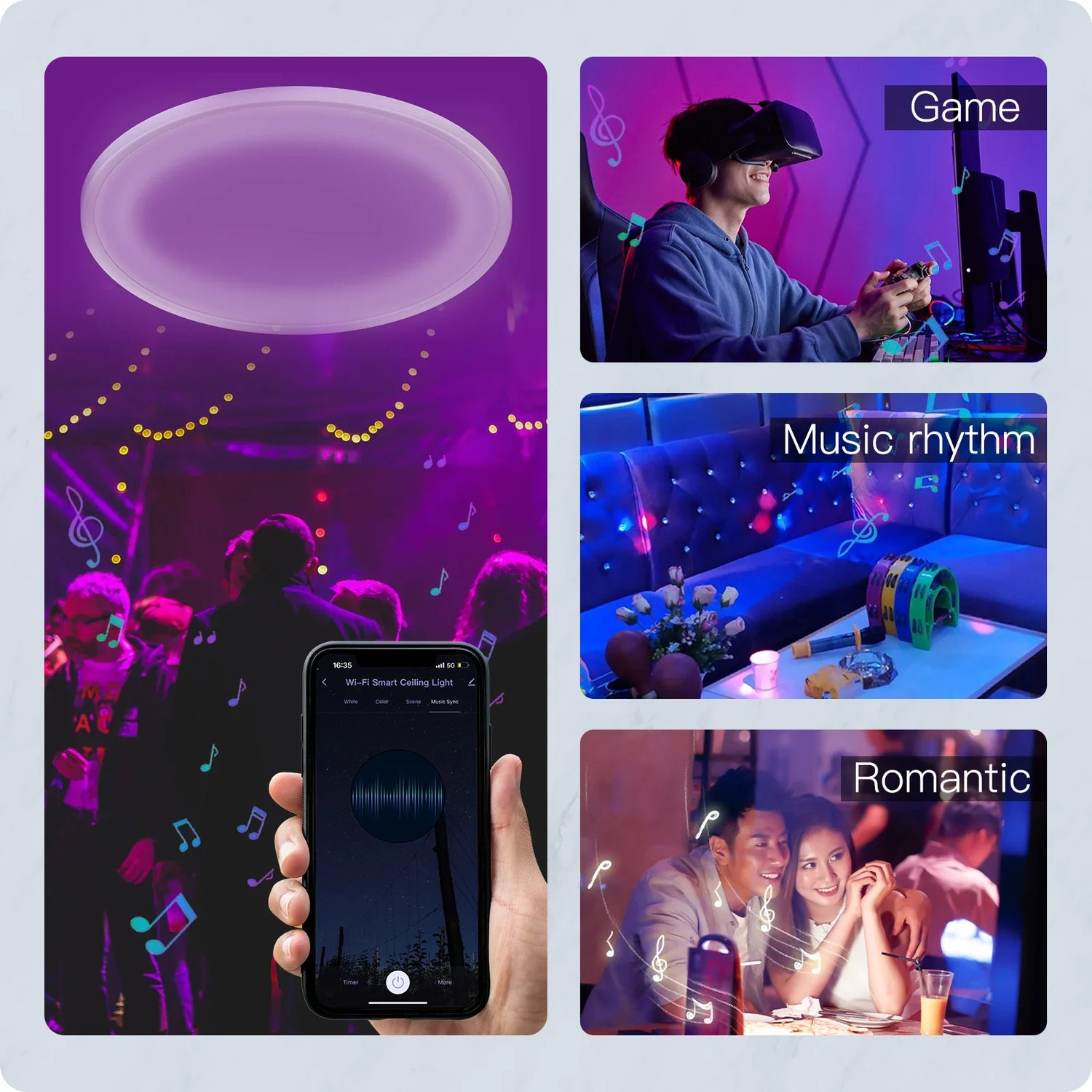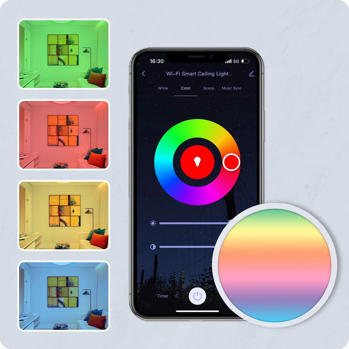 • WiFi Connectivity: Manage your ceiling light from anywhere with WiFi control, enabling you to adjust colors, brightness, and set schedules without the need for a hub.