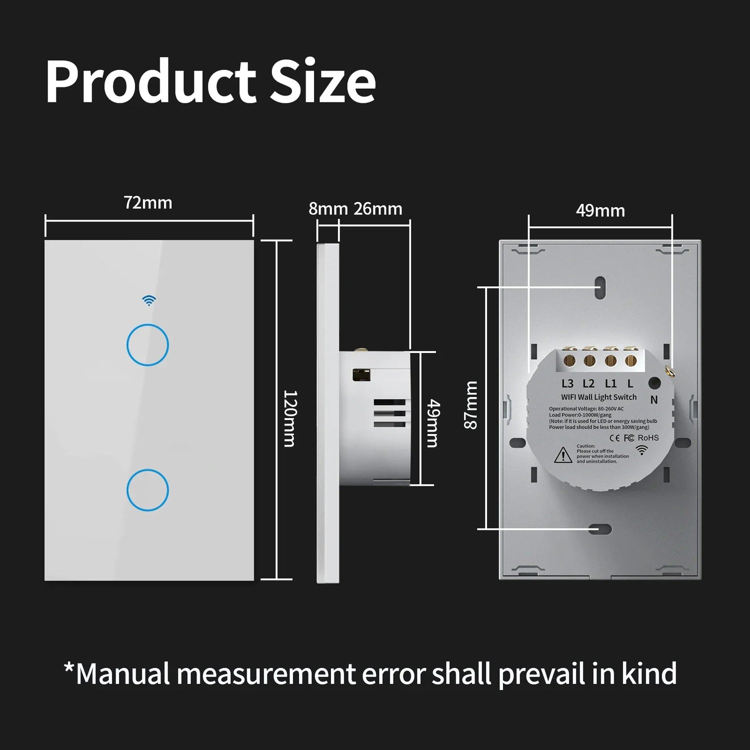 • Multiple Control Methods: Control your switch through the app, voice commands, or simply by touching the LED panel, offering flexibility and ease in managing your home’s lighting.