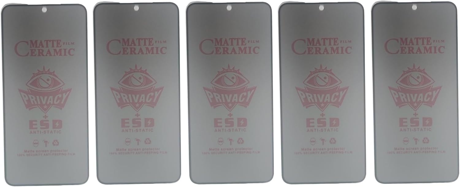 MATTE PRIVACY [5 Pack] Ceramic Screen Protectors for iPhone Samsung Galaxy S24 - Premium Shockproof Anti-Spy Phone Cover, Clear, 10647581429034