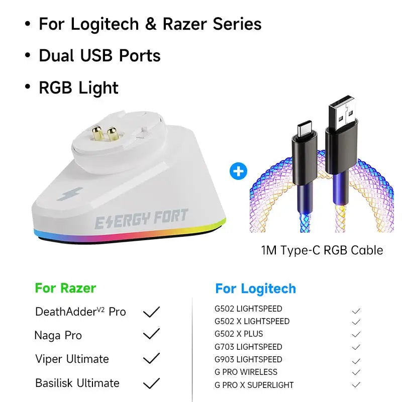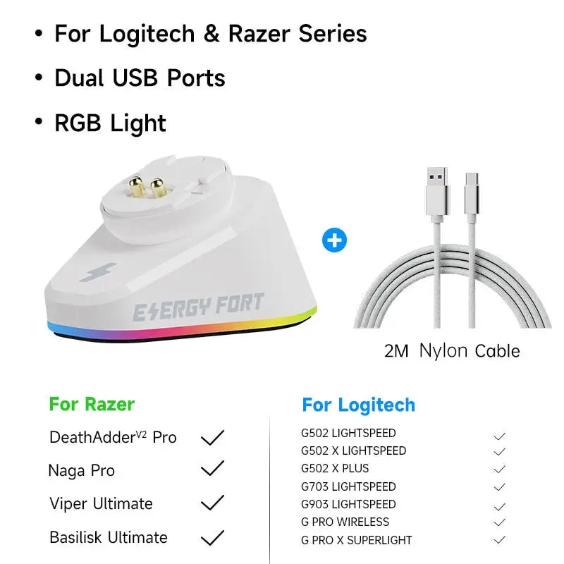 Introducing our high-performance Gaming Mouse Wireless Charger, specially designed for Logitech gaming mice models including G403, G502, X Plus, G703, G903, HERO Lightspeed, Dock Station, G PRO X Superlight, and Hero GPW2. With its advanced wireless charging technology, this charger ensures seamless and reliable power supply for your gaming mice.