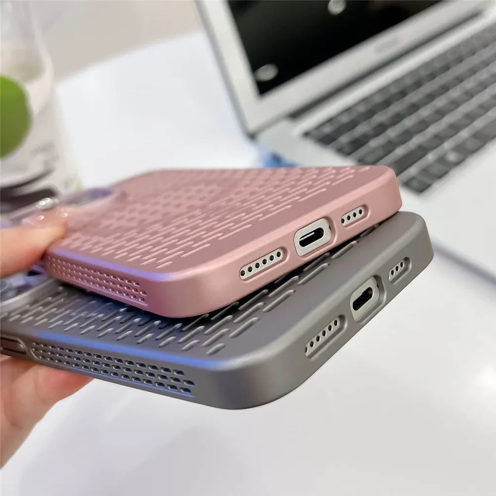 Keep your iPhone cool and protected with this Breathable Matte Color MagSafe Heat Dissipation Case, designed for models 15, 14, 13, 12, and 11 Pro Max. Engineered with breathable materials, this case enhances heat dissipation to prevent overheating during use. MagSafe compatibility ensures seamless magnetic wireless charging, while the durable construction offers reliable protection against drops and daily wear. Combining functionality with advanced cooling, this case is the perfect accessory to keep your iPhone performing at its best.