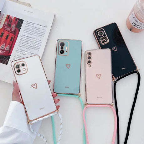 Love Heart Crossbody Lanyard Strap Phone Case For Xiaomi Mi 11t Pro 9 10 Mi 11 12 Lite Mi11 11lite