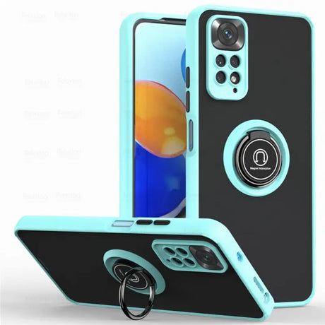 Luxury Magnetic Phone Case with Ring Holder Stand For Xiaomi Redmi Note 11 S 4G Car Matte Armor