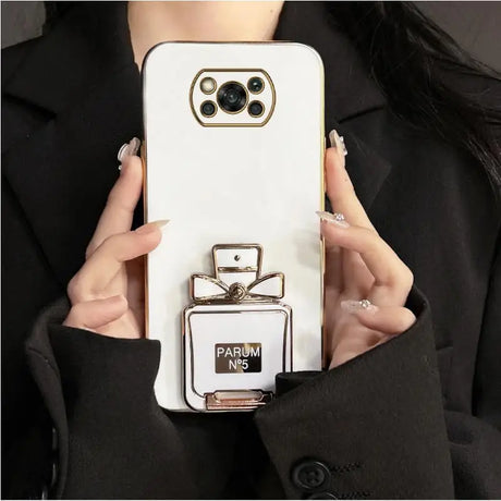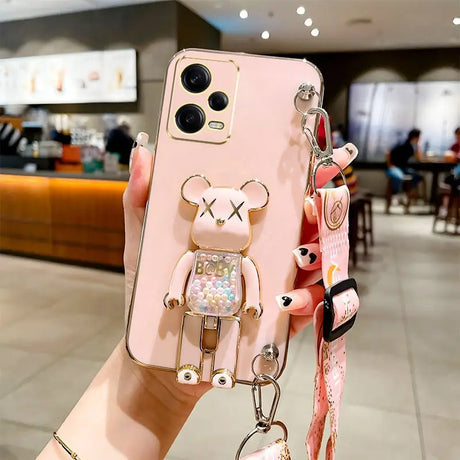 Luxury Plating Pastel Phone Case with Glitter Bear Holder Stand and Lanyard For Xiaomi POCO F5 X5