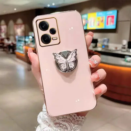 Luxury Plated Phone Case with 3D Butterfly Ring Holder for Xiaomi Poco X5 X4 M4 X3 Pro NFC 5G Stand