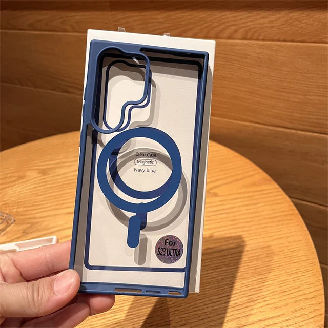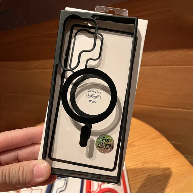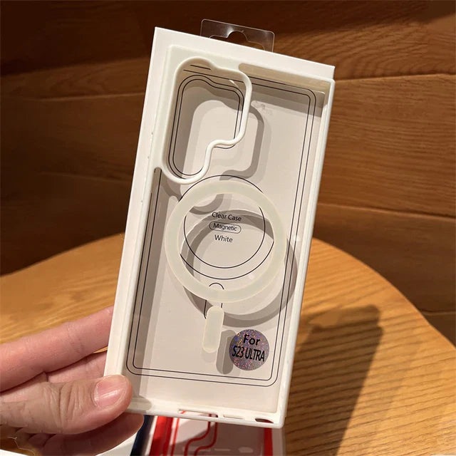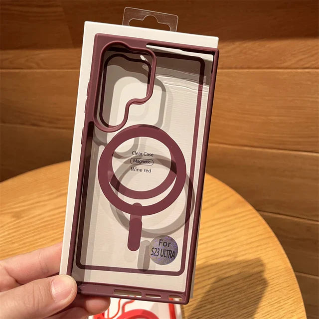 Indulge in luxury and convenience with our MagSafe Wireless Charging Phone Case for Samsung Galaxy S24, S23, and S22 Ultra Plus. Engineered with precision, this case seamlessly integrates MagSafe technology for effortless wireless charging. The sleek design not only offers magnetic protection but also adds a touch of sophistication to your device. Crafted from premium materials, it provides reliable protection against scratches, bumps, and everyday wear and tear. Elevate your smartphone experience with this stylish and functional accessory, combining elegance with cutting-edge technology.