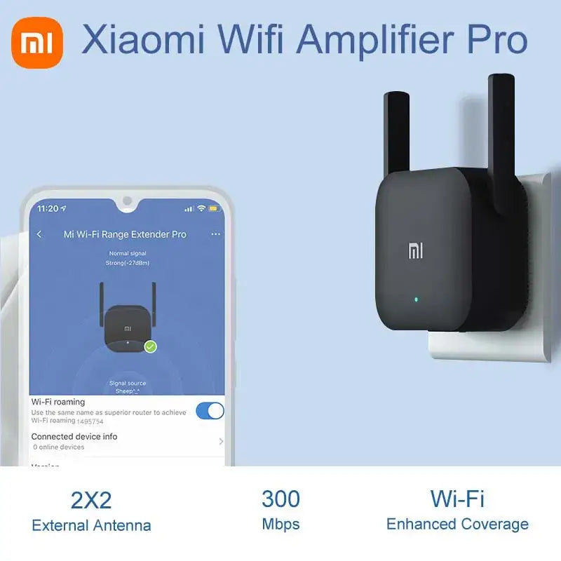 Enhance your wireless connectivity with the Xiaomi Original Wifi Amplifier Pro Router – a powerful network expander designed to boost your Wi-Fi range and provide seamless connectivity. This 300M 2.4G repeater and range extender are engineered to optimize and extend your existing Wi-Fi network, ensuring a reliable and efficient internet experience.
