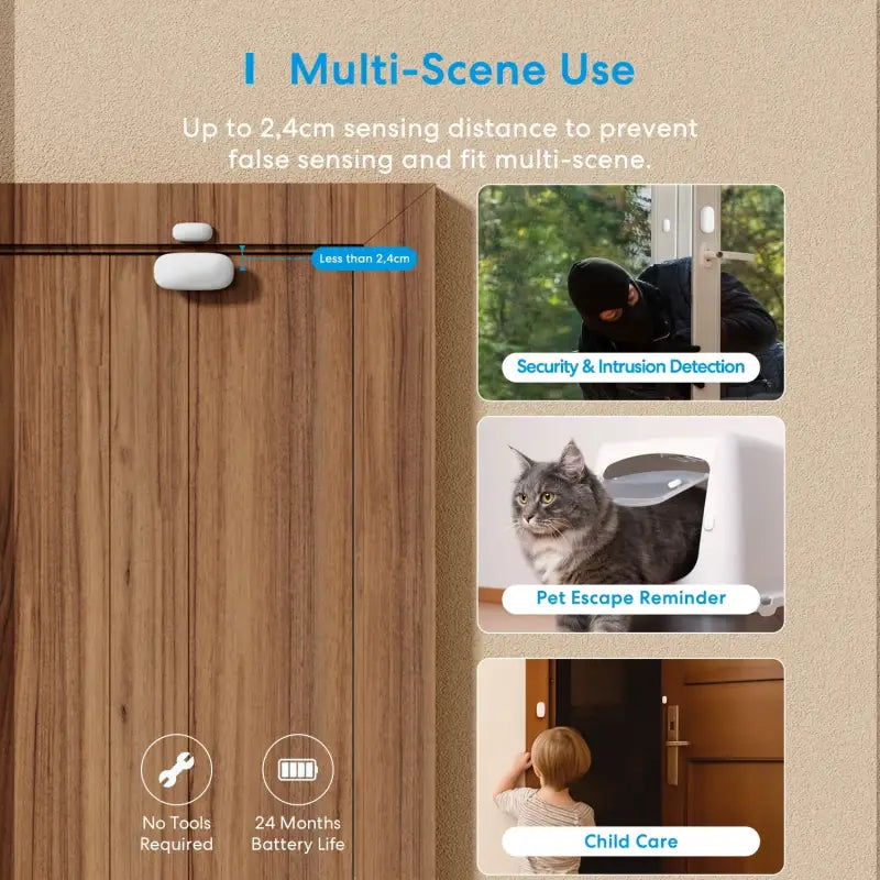 Receive instant alerts and alarms when doors or windows are opened or closed, allowing you to monitor and secure your home remotely. The Meross Door Sensor integrates seamlessly into your smart home ecosystem, providing peace of mind and enhancing your overall security.