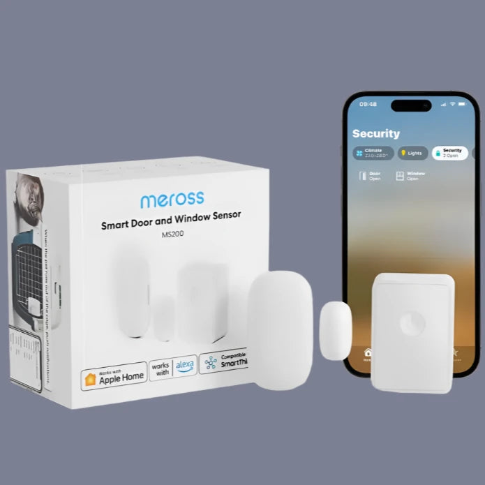 Enhance the security of your home with the Meross HomeKit WiFi Smart Door Sensor, a versatile window and door open/closed detector. Seamlessly compatible with HomeKit, Google Assistant, Alexa, and SmartThings, this sensor provides smart home security and protection.