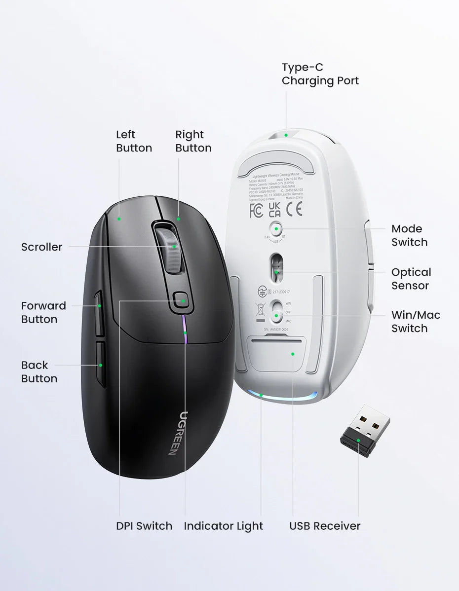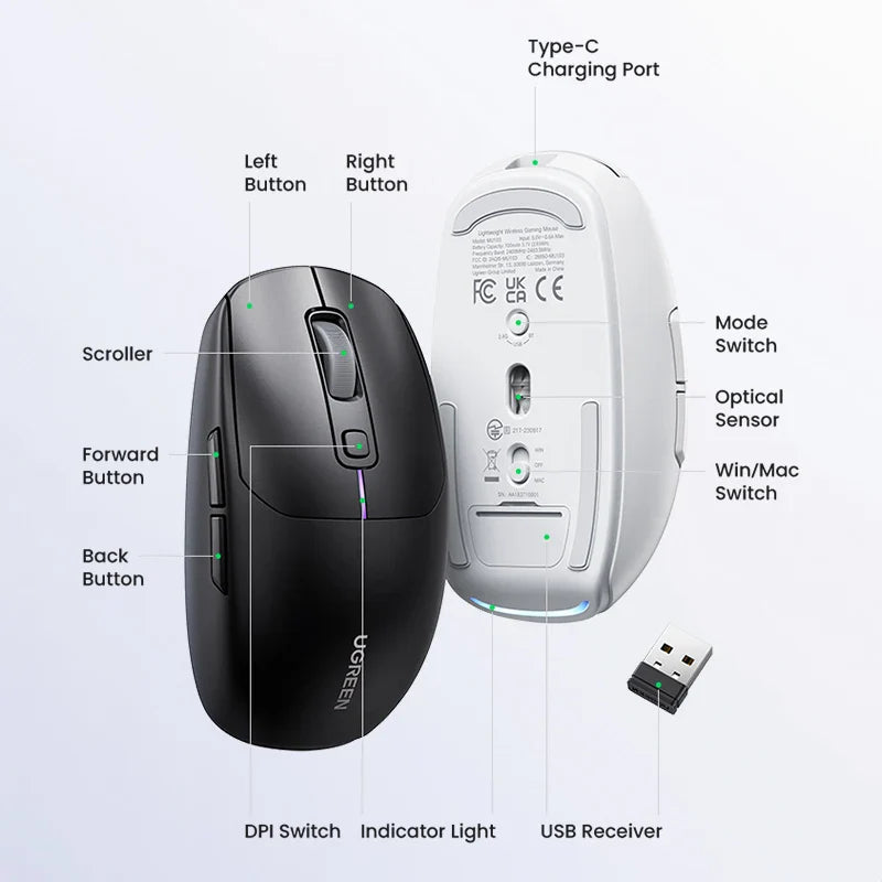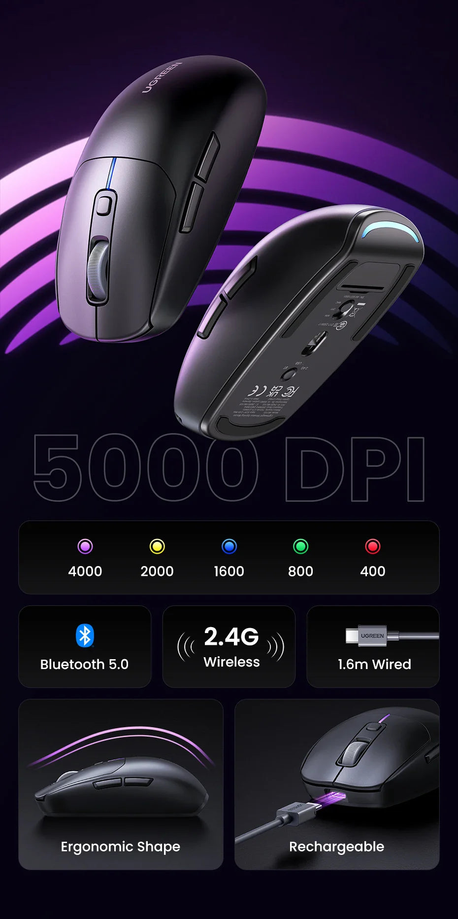 Dominate your gaming sessions with the UGREEN Wireless Bluetooth Gaming Mouse. Featuring a 5000DPI sensor and six programmable buttons, this rechargeable mouse delivers precision and control for every move. Designed for serious gamers, it offers seamless connectivity and customizable performance, giving you the edge you need to win.