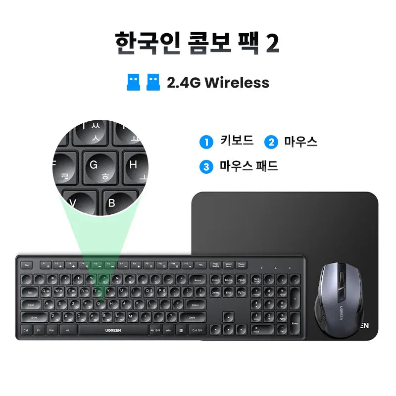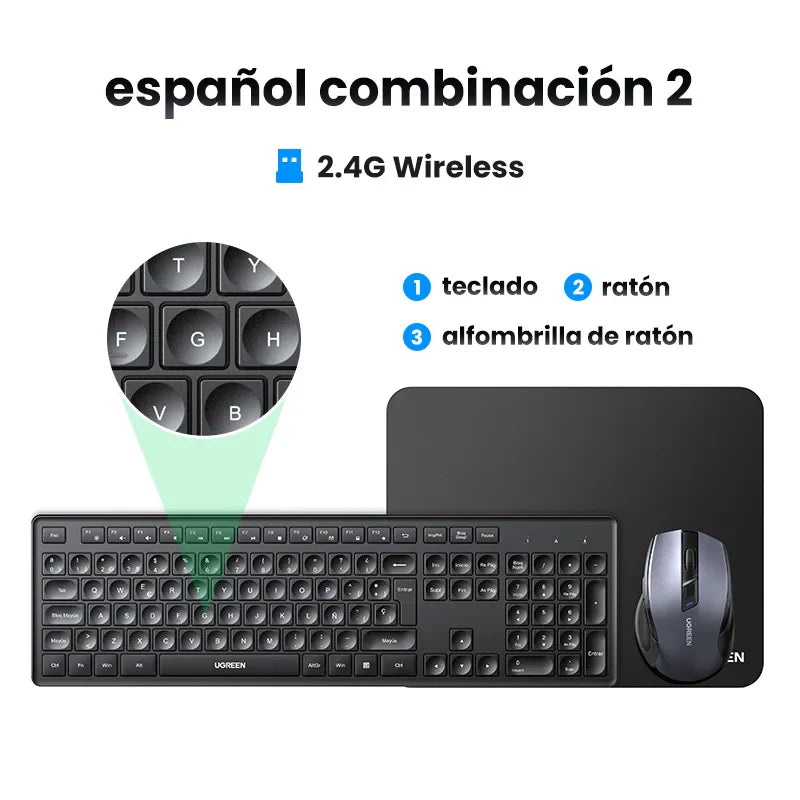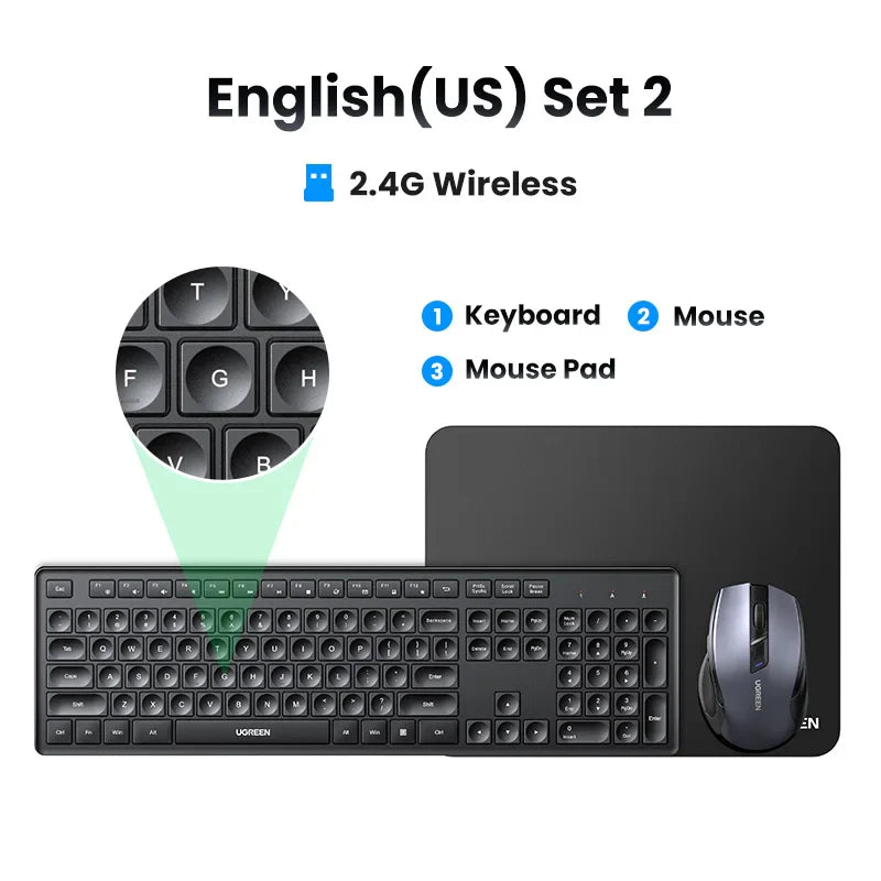 UGREEN Wireless Keyboard & Mouse Set 4000DPI - Ergonomic Keyboard & Mouse Package