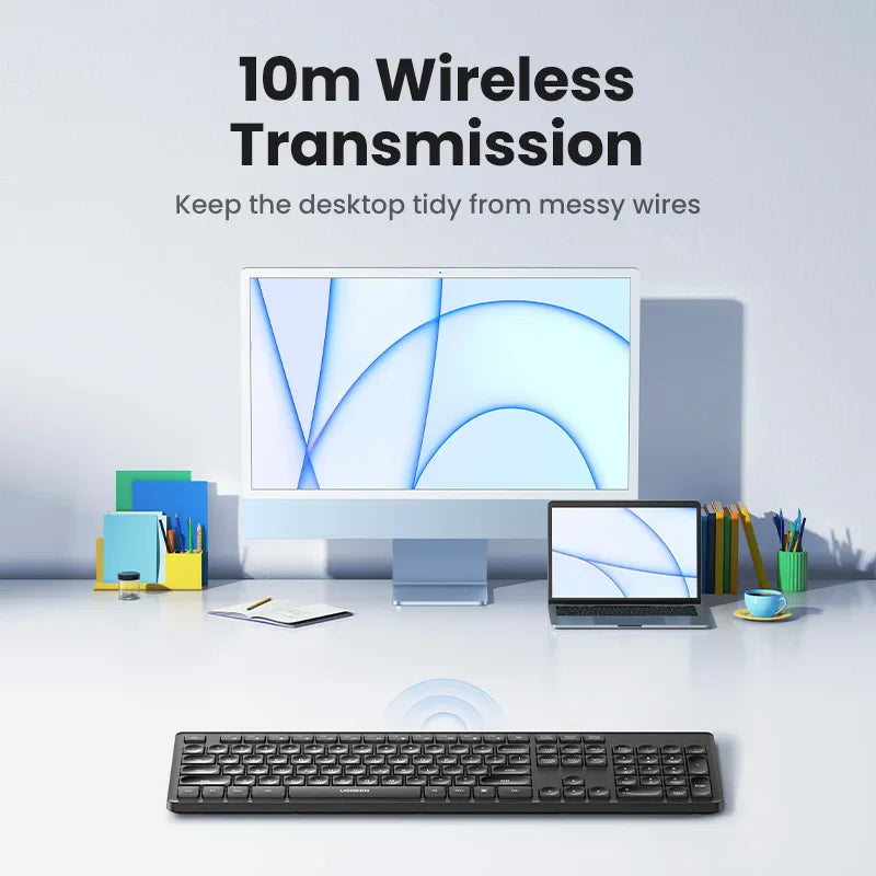 Upgrade your workspace with the UGREEN Wireless Keyboard & Mouse Set. Featuring an ergonomic design and a 4000DPI precision mouse, this set ensures comfortable and efficient use throughout the day. Perfectly paired for seamless performance, it’s the ideal package for boosting both productivity and comfort.
