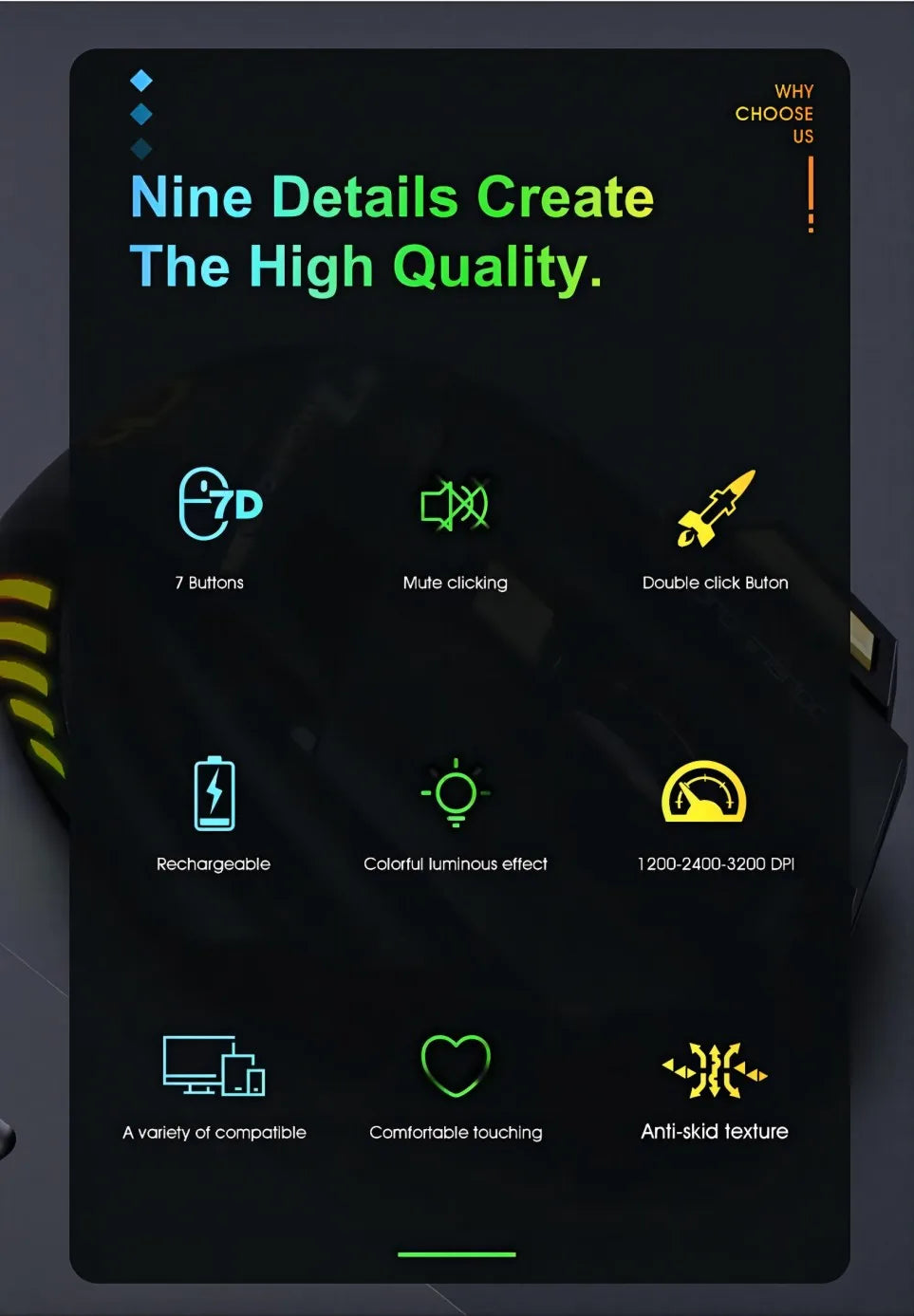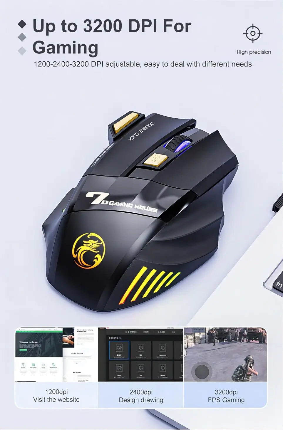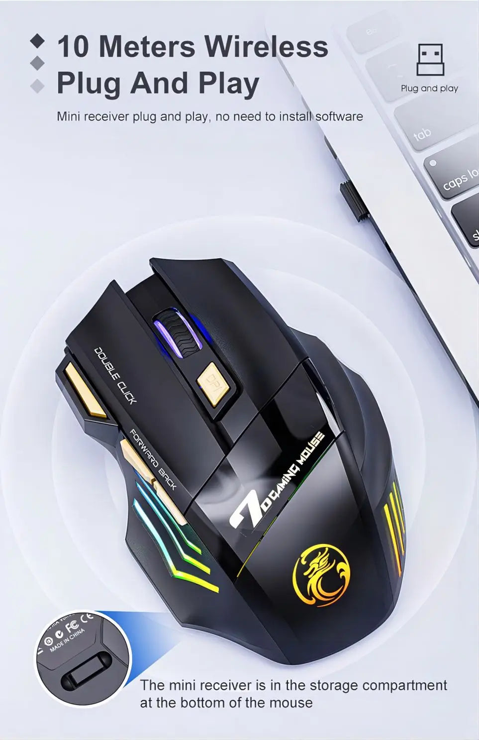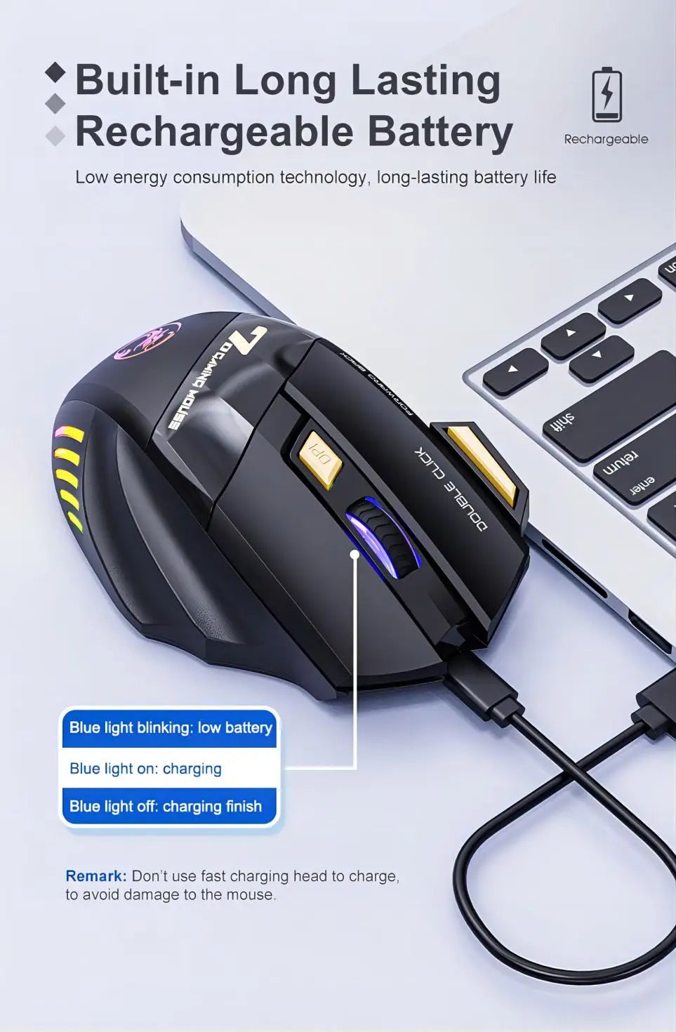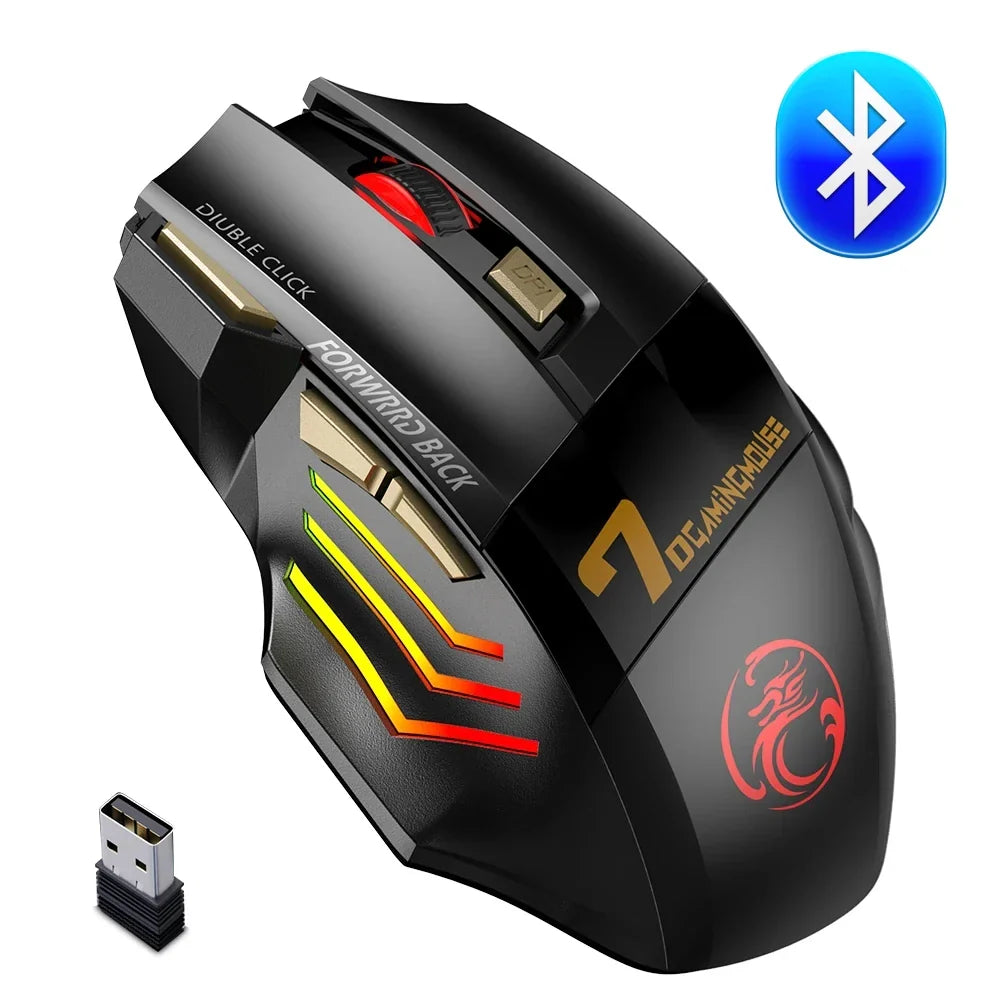 Wireless PC Bluetooth & Wireless Mouse - Rechargeable RGB Backlit Computer Gaming Mouse