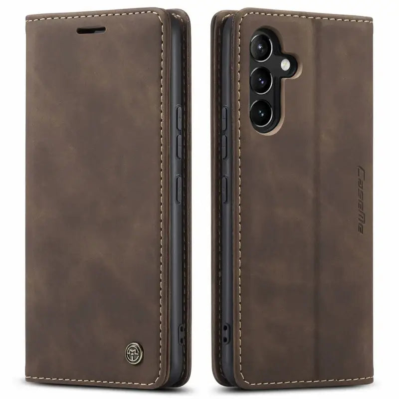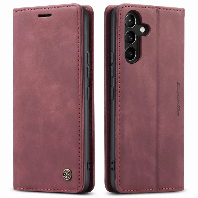 This luxury leather wallet-style case is tailored for Samsung Galaxy models A54 5G, A53, A52, A14, and A32. Featuring multiple card slots and a convenient flip stand, it combines elegant design with practical functionality. Crafted from premium leather, the case offers durable protection while allowing hands-free viewing, making it an ideal accessory for professionals seeking both style and versatility.