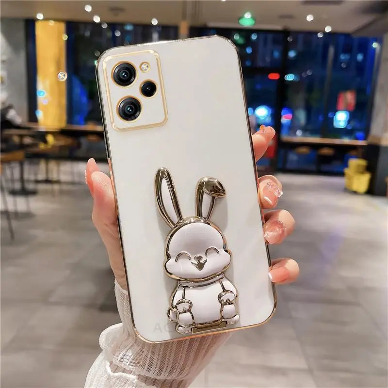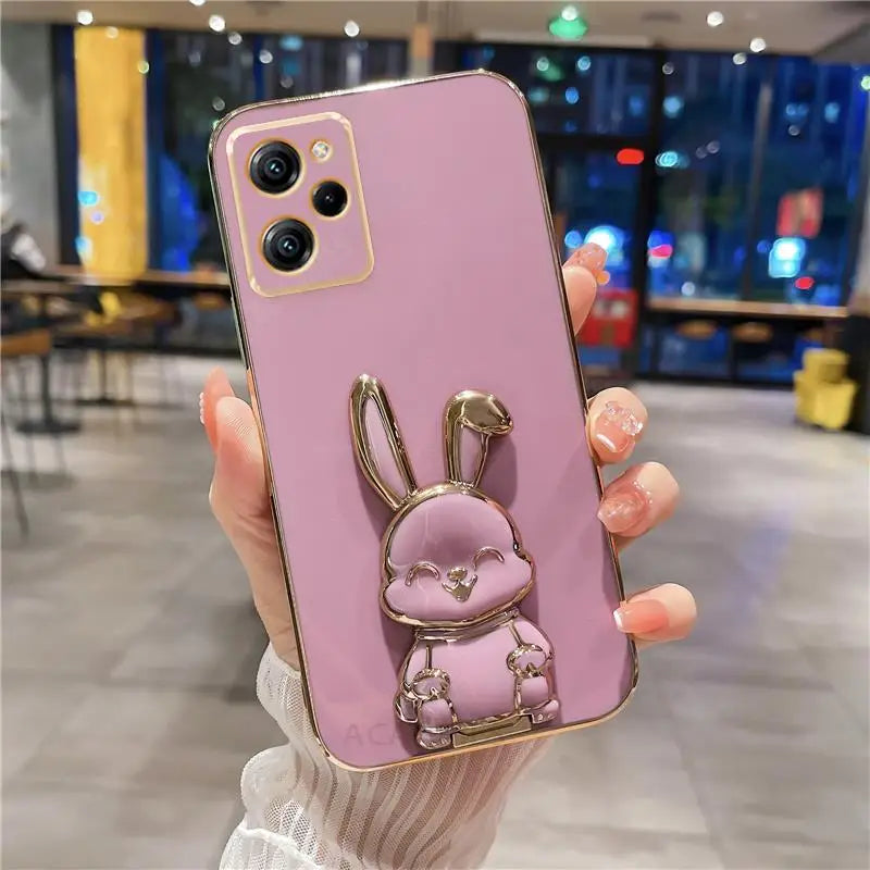 Luxury Plated Phone Case with Rabbit Holder Stand For Xiaomi Mi Poco X5 Pro X5pro X 5 X3 X4 M4 X4pro